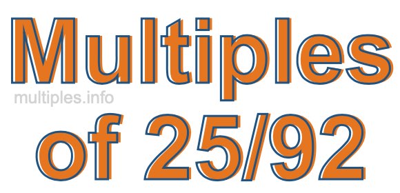 We define the multiples of 25/92 as the product of any integer multiplied by 25/92. Therefore, to create a list of multiples of 25/92 we start by multiplying 25/92 by one, then we multiply 25/92 by two, then we multiply 25/92 by three, and so on.
