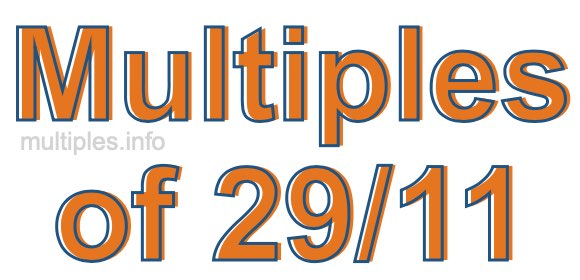 As we stated above, the list of multiples of 29/11 goes on forever because the product of 29/11 multiplied by any whole number (integer) is a multiple of 29/11.